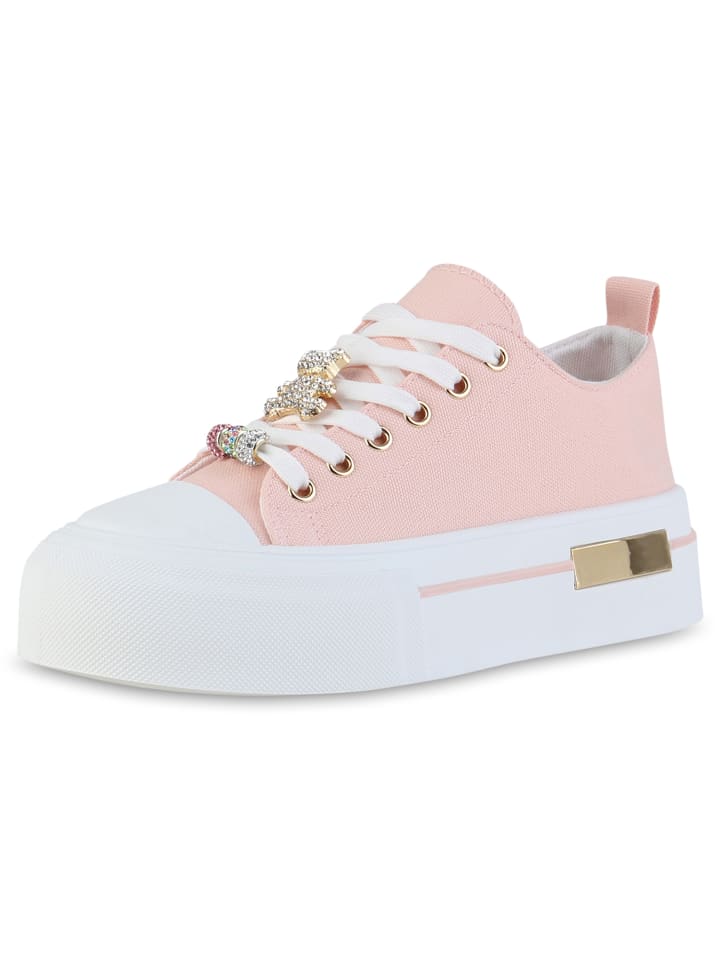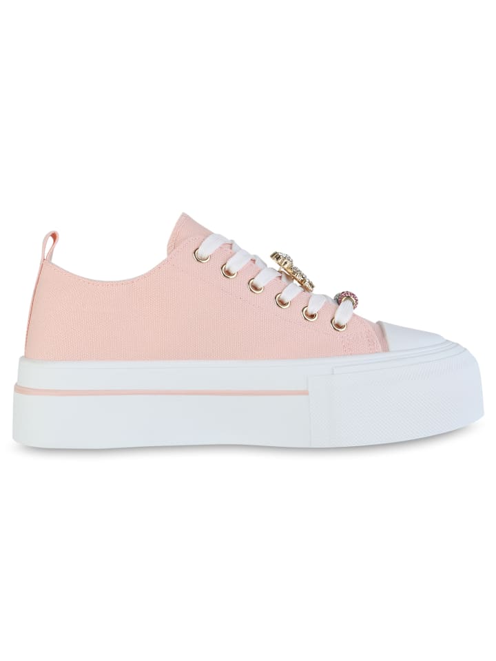Модель кроссовок на платформе не оставляет желать лучшего. Эта модель в тренде и прекрасно сочетается со многими нарядами. Эти женские туфли популярны весной, летом и осенью. Подкладка отсутствует. Стиль обуви модный и привлекает внимание. Кроме того, практичная шнуровка обеспечивает легкое надевание и снятие. Еще одной изюминкой являются детали обуви: стразы и декоративные бусины. Кроссовки просты в уходе и долговечны благодаря текстильному верху. Текстильная подкладка обеспечивает удобную посадку, текстильная стелька - комфорт при ходьбе, а подошва смягчает каждый шаг. Благодаря платформе высотой 4,5 см и круглому носку эти туфли идеально подойдут к любому образу и случаю.
