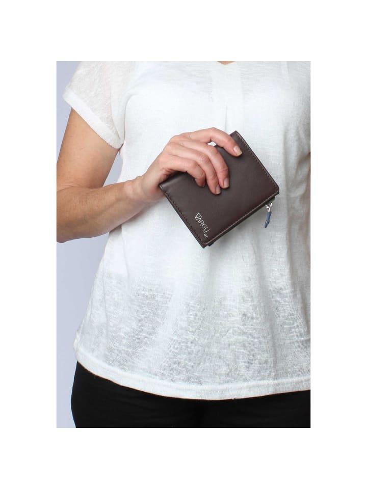 Кошелек VARGU ADA из натуральной кожи с RFID-меткой - идеальный выбор для женщин, предпочитающих удобный и хорошо организованный кошелек. Функциональный дизайн с отделением для монет на молнии обеспечивает удобный обзор. Размеры: 9,5 x 12 x 2,5 см.