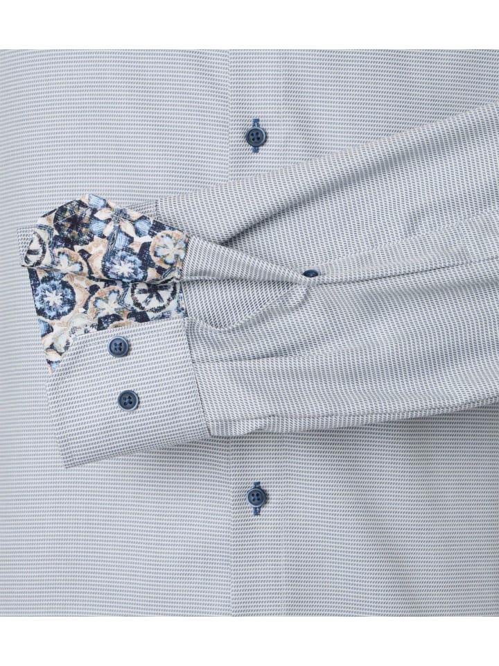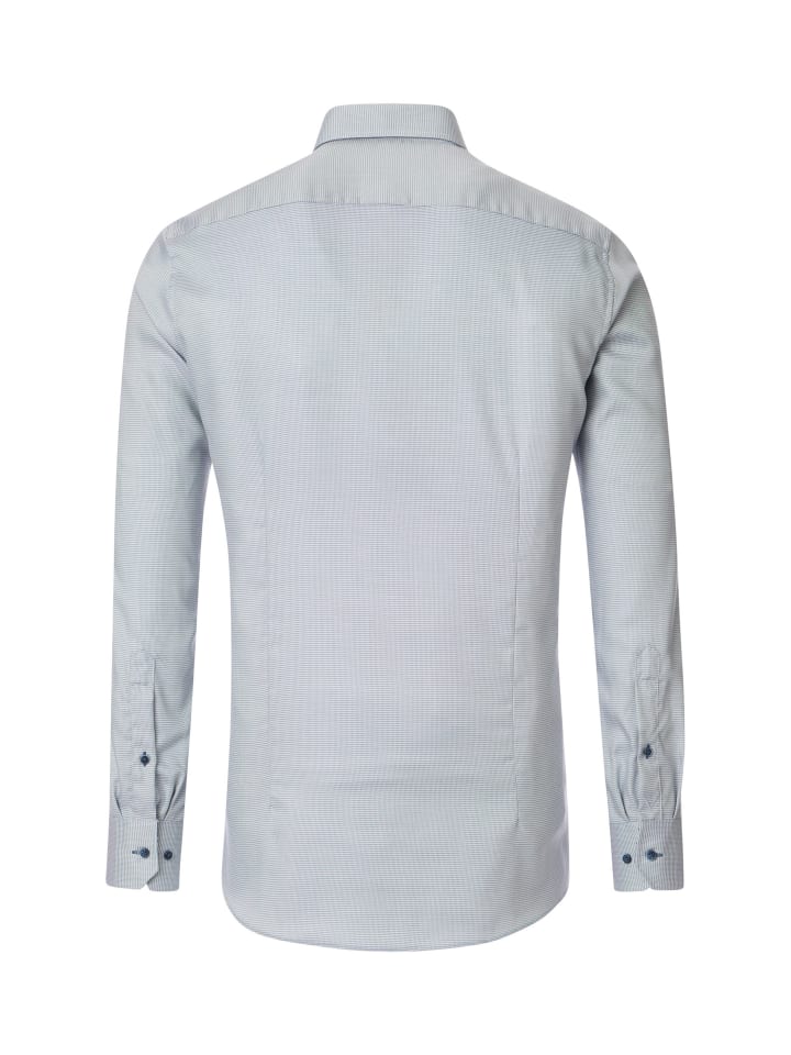 Для мужчин, предпочитающих более облегающий крой, эта рубашка станет идеальным выбором благодаря своему приталенному крою. Рубашка также особенно удобна в носке благодаря высококачественному хлопку. Модная узорчатая отделка стильно дополняет рубашку и делает ее идеальным дополнением для современного мужчины. Эта деловая рубашка, сочетающаяся с брюками или чиносами в тон, стильно дополнит любой образ.