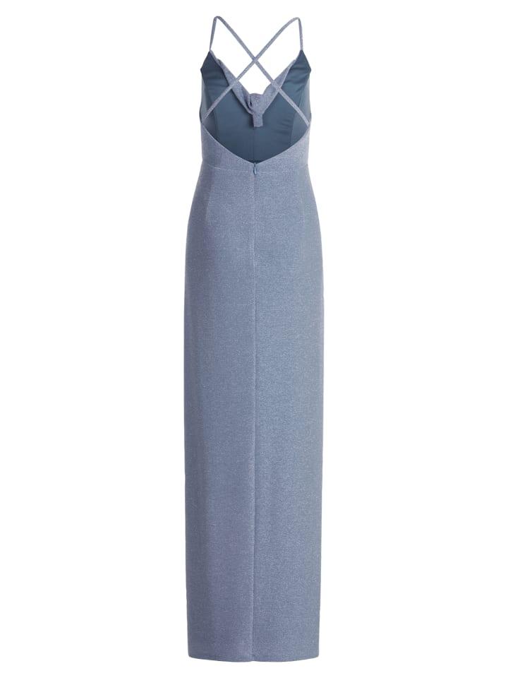 Это элегантное вечернее платье макси-длины с женственным водопадным вырезом и облегающим кроем, подчеркивающим вашу фигуру. Безрукавка и боковой разрез придают платью современный, соблазнительный вид. Однотонная ткань обеспечивает вневременную элегантность, а застежка-молния гарантирует идеальную посадку. Это платье идеально подходит для торжественных случаев, придавая вашему образу изысканность и стиль.