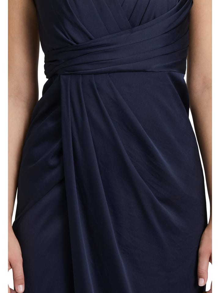 Модель с множеством преимуществ: это элегантное вечернее платье из высококачественного атласа впечатляет своим облегающим кроем и женственными акцентами. V-образный вырез подчеркивает силуэт, отсутствие рукавов добавляет нотку изысканности, а регулируемые бретели обеспечивают индивидуальный комфорт. Платье простого однотонного цвета можно комбинировать с различными вариантами, что делает его идеальным выбором для торжественных случаев.