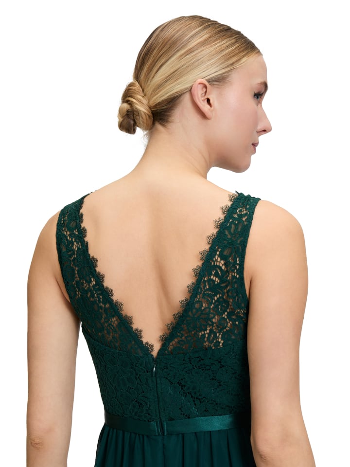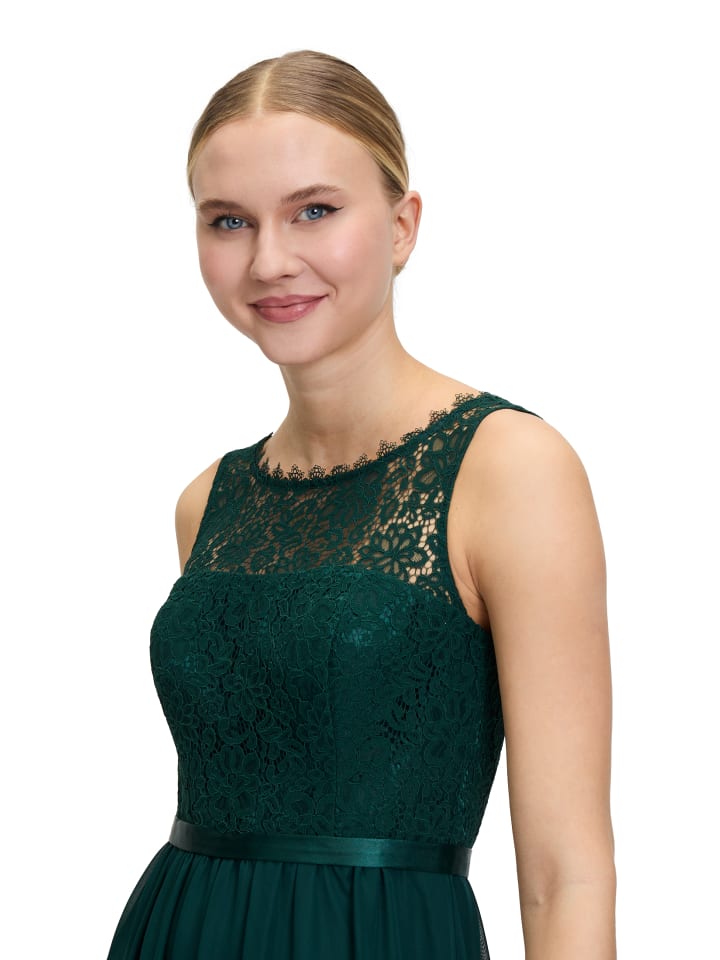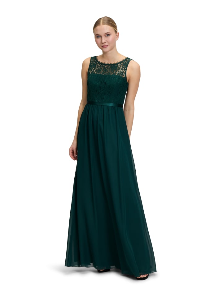 Ищете настоящую жемчужину в свой гардероб? Это коктейльное платье макси от Vera Mont станет идеальным завершением ваших поисков. Верх из тонкого цветочного кружева прекрасно контрастирует с юбкой из нежного шифона. Красивый круглый вырез завершает это расклешенное платье без рукавов. Идеально для вашего следующего праздничного случая!