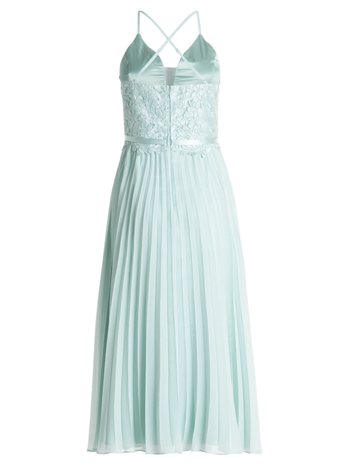 Ищете любимую вещь? Это элегантное вечернее платье соблазняет изящной вышивкой и струящимся плиссированным узором, создающим особый образ. Приталенный крой подчеркивает силуэт, а однотонный дизайн обеспечивает вневременную элегантность. Благодаря регулируемым бретелям и практичной молнии, это идеальный выбор для торжественных случаев!