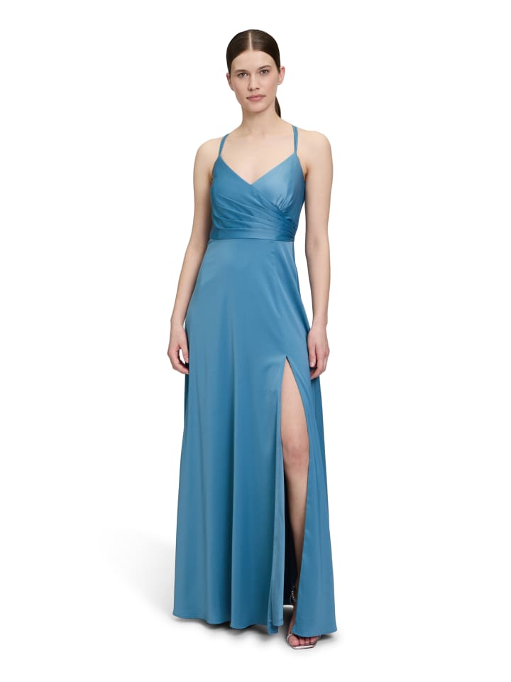 Ищете эффектное платье? Это облегающее вечернее платье впечатляет элегантным кроем и простым, лаконичным дизайном. Разрез и тонкие бретельки придают платью соблазнительный, женственный вид, а молния обеспечивает идеальную посадку. Идеально для особых случаев - настоящая приманка для глаз!