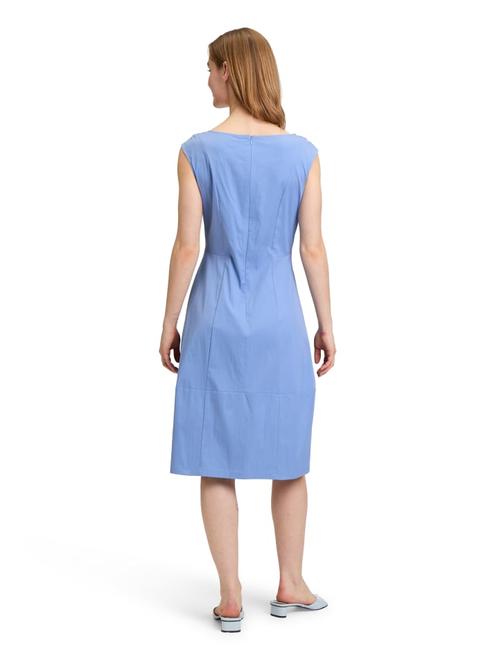 Это летнее платье впечатляет искусным исполнением и женственными линиями. Приталенный крой и высококачественный хлопковый смесовой материал подчеркивают силуэт и обеспечивают удобную посадку. Круглый вырез горловины и отсутствие рукавов придают платью элегантную легкость, а практичные карманы и молния добавляют функциональные детали. Неизменный спутник на все случаи жизни!
