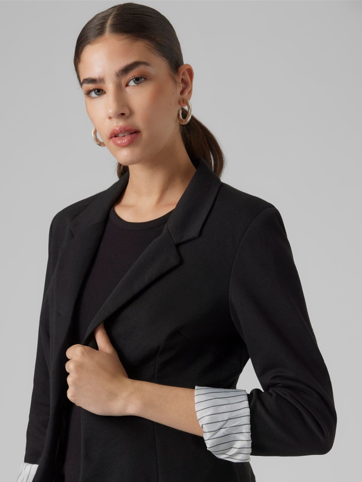 Не знаете, что надеть? Наденьте блейзер! Этот стильный блейзер станет вашим новым фаворитом. Блейзер всегда выглядит элегантно и изысканно, независимо от того, надеваете ли вы его поверх топа или простой футболки. Сочетайте его с широкими джинсами и каблуками для создания стильного повседневного образа.