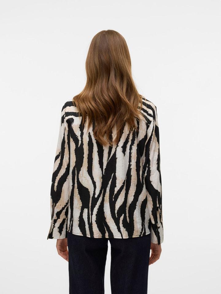 Эта блузка станет стильным и универсальным дополнением к вашему гардеробу: ее можно носить как расстегнутой поверх простого топа, так и застегнутой. Сочетайте ее с классическими джинсами и простой футболкой для создания стильного повседневного образа, а с брюками для костюма и каблуками - более элегантно.