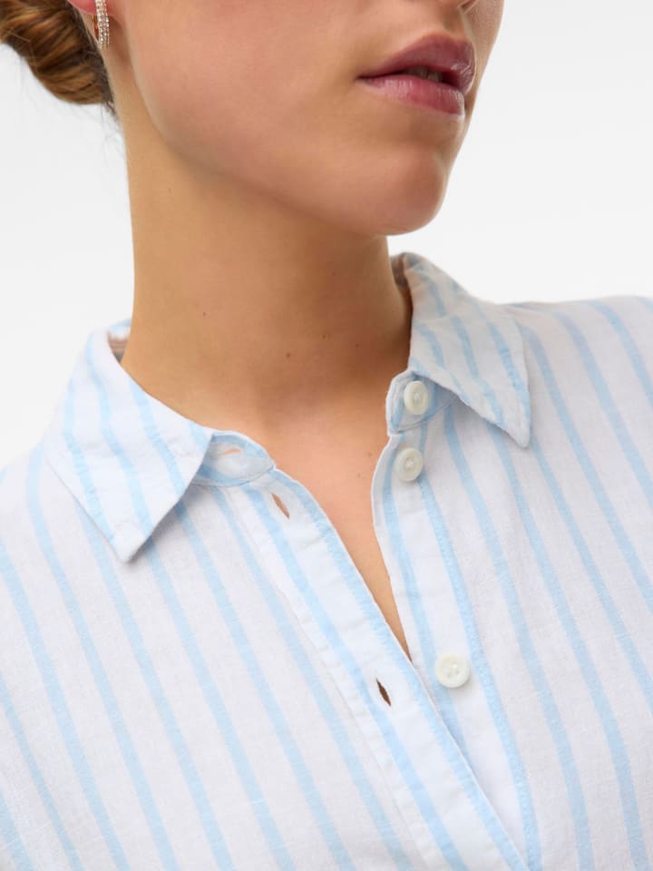 Эта блузка станет стильным и универсальным дополнением к вашему гардеробу: ее можно носить как расстегнутой поверх простого топа, так и застегнутой. Сочетайте ее с классическими джинсами и простой футболкой для создания стильного повседневного образа, а также с брюками для костюма и каблуками.
