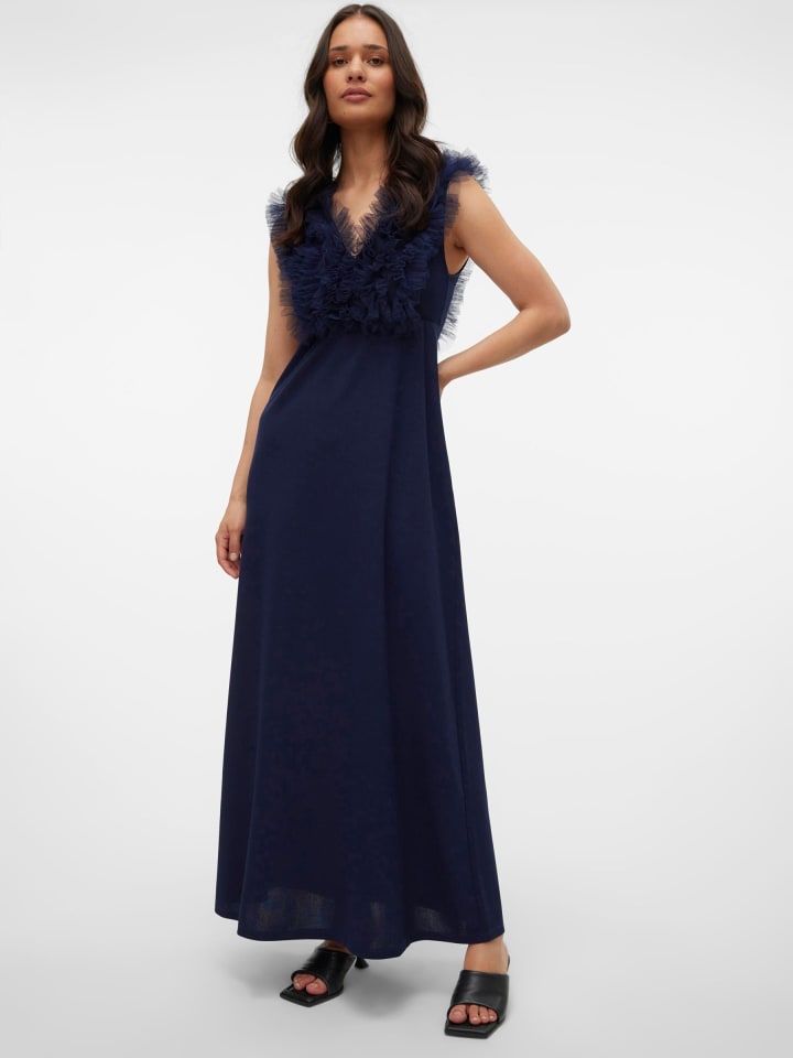 Платье макси никогда вас не подведет. Платья макси одновременно элегантны и женственны, и это платье не исключение. Дополните его босоножками на плоской подошве для легкого и воздушного летнего образа или туфлями на каблуке для модного вечернего образа.