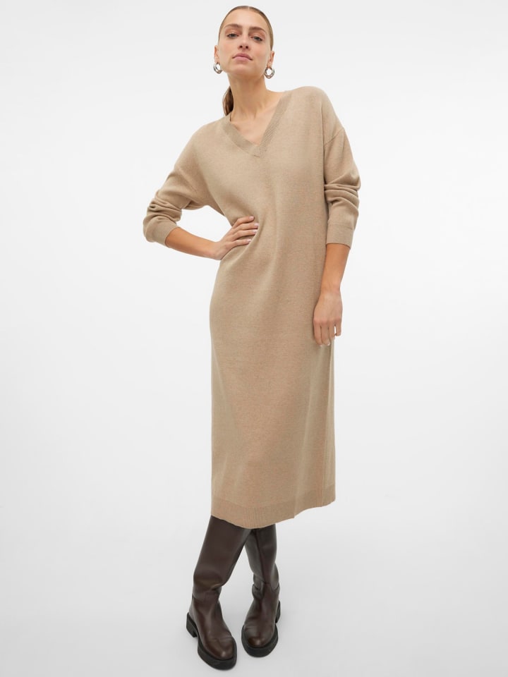 Вязаное платье не знает границ в плане комфорта. Эта модель - классический must-have для холодных дней. Дополните его колготками и высокими массивными ботинками для создания современного повседневного образа. А с помощью нескольких стильных аксессуаров вы быстро превратите это платье в праздничный образ.