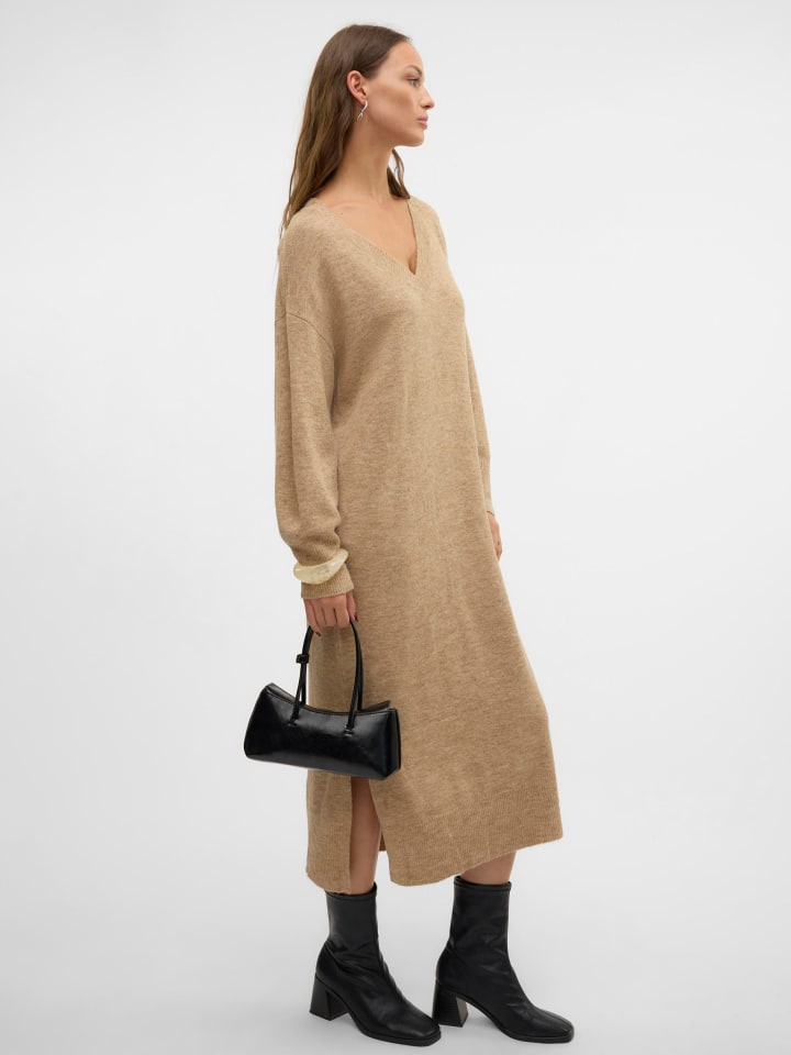 Трикотажное платье не знает границ в плане комфорта. Эта модель - классический must-have для холодных дней. Дополните его колготками и высокими массивными ботинками для создания современного повседневного образа. А с помощью нескольких стильных аксессуаров вы быстро превратите это платье в праздничный наряд.
