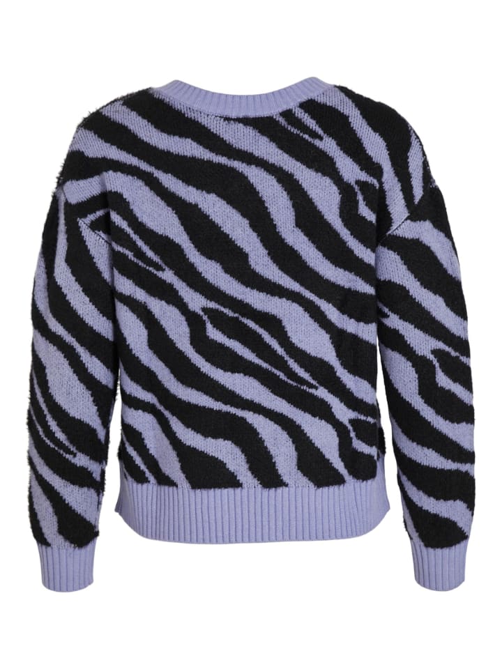 Свитер с длинными рукавами впечатляет своей высококачественной структурой вязки с современным жаккардовым узором в виде зебры.