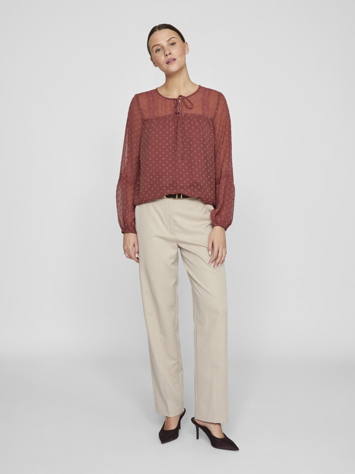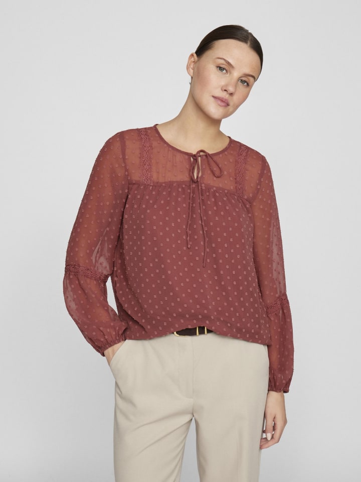 Этот топ с длинными рукавами украшен множеством женственных деталей. Благодаря сетчатому материалу с мелким узором он подойдет как для работы в офисе, так и для приятного вечера.