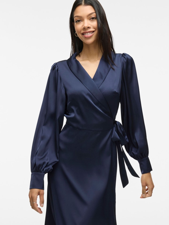 Это классическое платье-халат миди-длины, неподвластное времени, станет незаменимой вещью в вашем гардеробе. Регулируемая талия подчеркнет вашу фигуру и обеспечит удобную посадку, а классический дизайн позволит легко создать стиль. Платье-халат из сатина с длинными рукавами. Длина миди. Объемные рукава. Рукава-буфы. V-образный вырез. Манжеты на 3 пуговицы. Элегантная неэластичная ткань. Классический крой. Длина: 130 см для размера 38. Длина рукава: 59 см для размера 38. Основной материал этого изделия изготовлен из переработанного полиэстера не менее чем на 50%. Переработанный полиэстер сохраняет природные ресурсы и сокращает отходы.