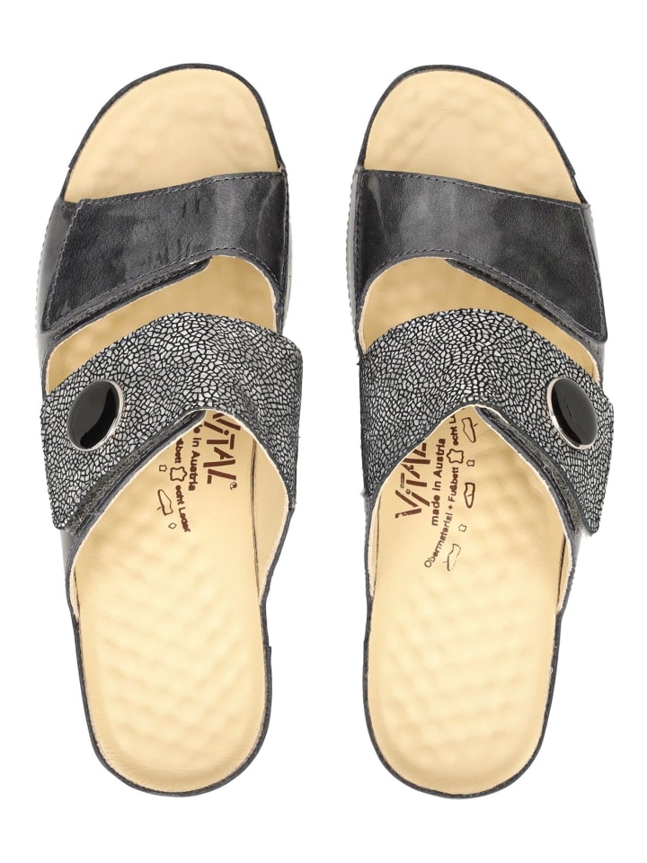 Эти удобные и высококачественные мюли от Vital, выполненные из высококачественной кожи, сочетают в себе дизайн и качество. Массажная стелька делает эту повседневную и функциональную обувь подходящей для ежедневного использования.