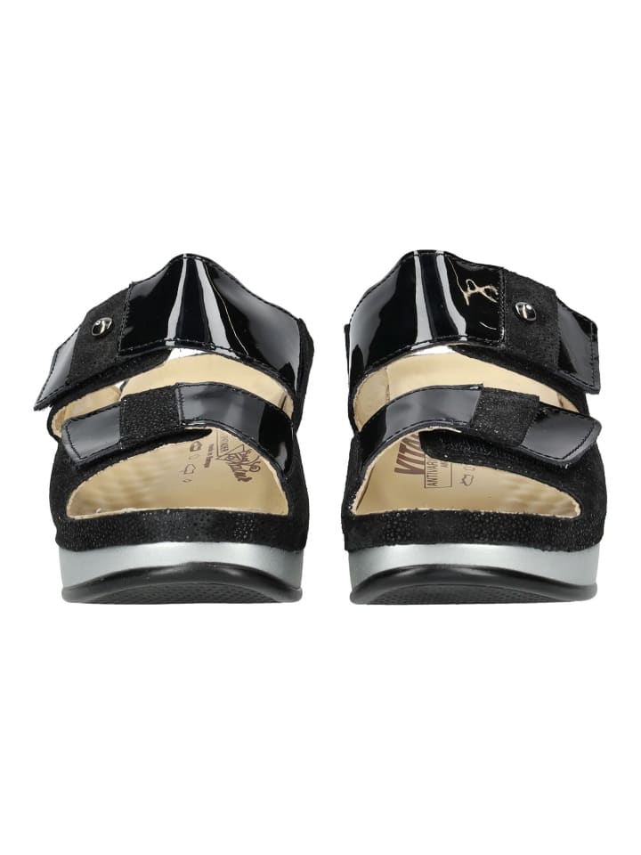 Удобные мюли Vital. Верх выполнен из высококачественной кожи. Внутренняя часть и стелька также изготовлены из кожи, которая плотно прилегает к стопе и позволяет ей дышать. Благодаря застежке-липучке размер обуви можно легко отрегулировать. Лакированная кожа дополняет общий вид.
