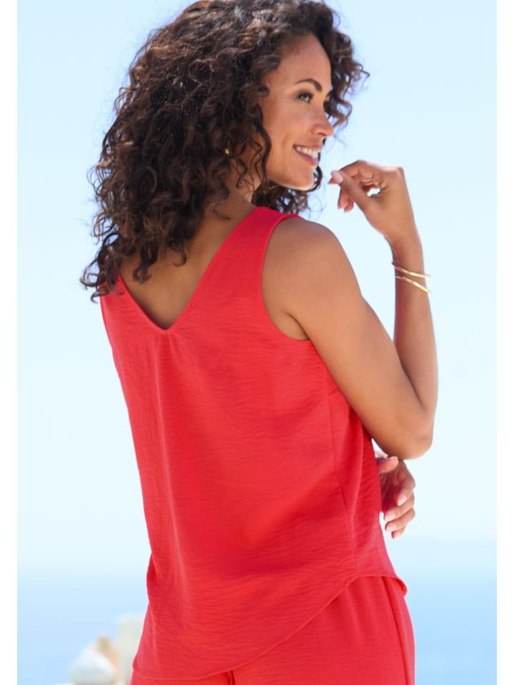 Однотонная блузка от Vivance с бретелями и женственным V-образным вырезом. Облегающий крой с закругленным нижним краем. Синтетический материал, не требующий сложного ухода.