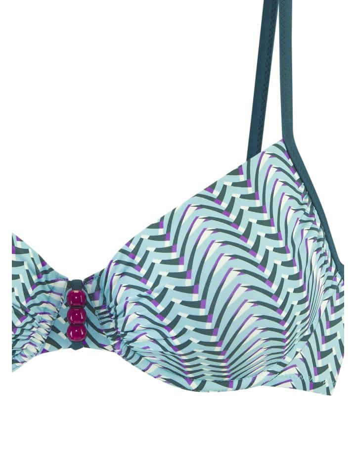 Великолепное бикини на косточках от Vivance с графическим принтом по всей поверхности. Верх со съемными мягкими чашечками и регулируемыми бретельками. Завышенные плавки регулируются по бокам. Ленты с контрастными декоративными бусинами. Эластичная ткань.