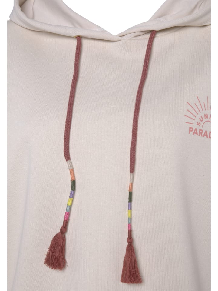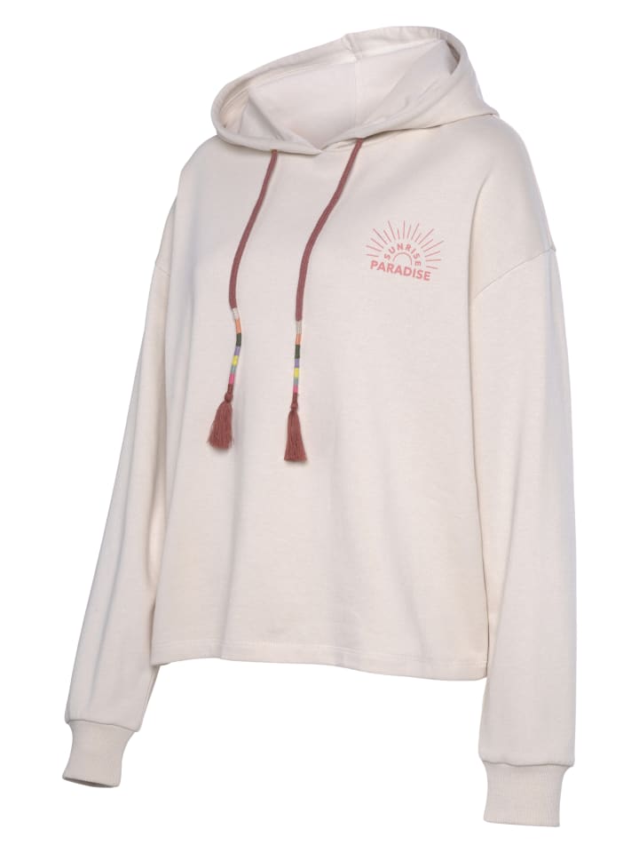 Толстовка Vivance с принтом. Регулируемая кулиска с цветным шнуром. Спущенная линия плеч и ребристые манжеты. Мягкая ткань толстовки.