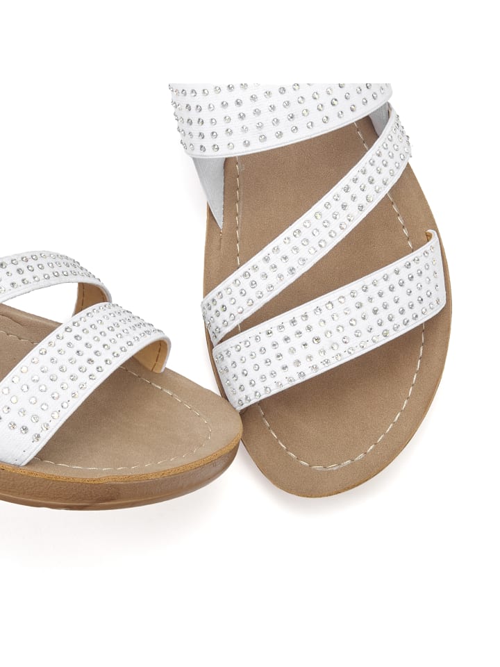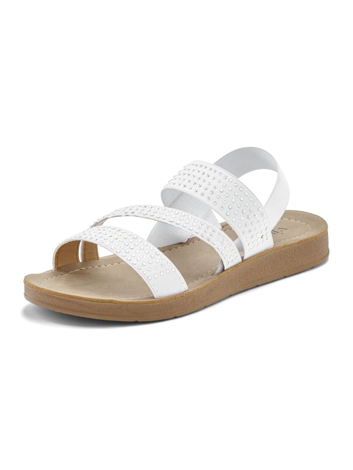 Сандалии Vivance на плоской подошве с эластичными ремешками, украшенными стразами. Изготовлены из водоотталкивающего материала - идеально подходят для пляжа и бассейна. Для отпуска или любого активного отдыха с джинсами, шортами или платьями. Верх из текстиля. Стелька из искусственной кожи. Синтетическая подошва.