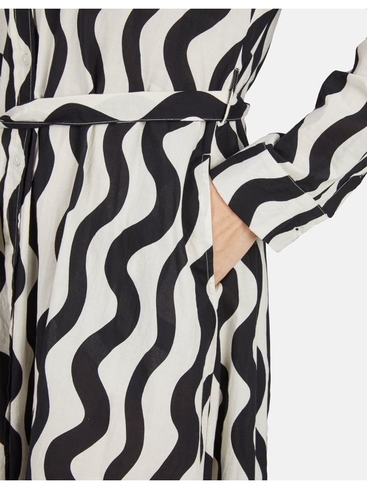 Это платье-рубашка макси А-силуэта из набивного хлопка с поясом-завязкой, отложным воротником и застежкой на пуговицы по всей длине. Длинные рукава с манжетами и кокетка сзади со складками придают платью элегантный и женственный вид. Карманы в швах обеспечивают практичное место для хранения. Длина 120 см для размера 38 идеально подходит для любого случая - повседневного или элегантного. Незаменимая вещь в вашем гардеробе!