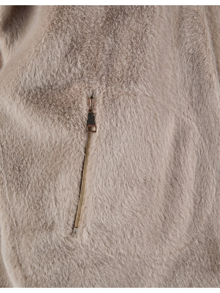 - С пришитым капюшоном из искусственной кожи Polarskin с эффектом тюленя и комбинированным материалом на внутренней стороне капюшона.