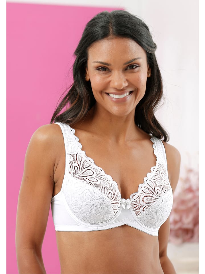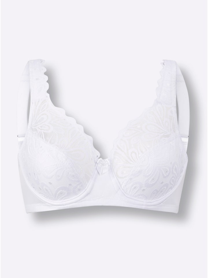Для надежной и комфортной поддержки: поддерживающий бюстгальтер на косточках от Wäschepur в нашей модели KARNEOL. Элегантное кружево на чашках, переходящее в мягкие регулируемые бретели сзади, создает женственный образ. Между чашками декоративные бантики.