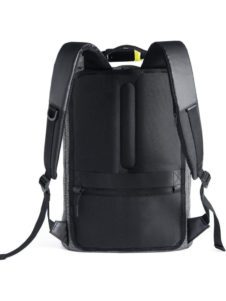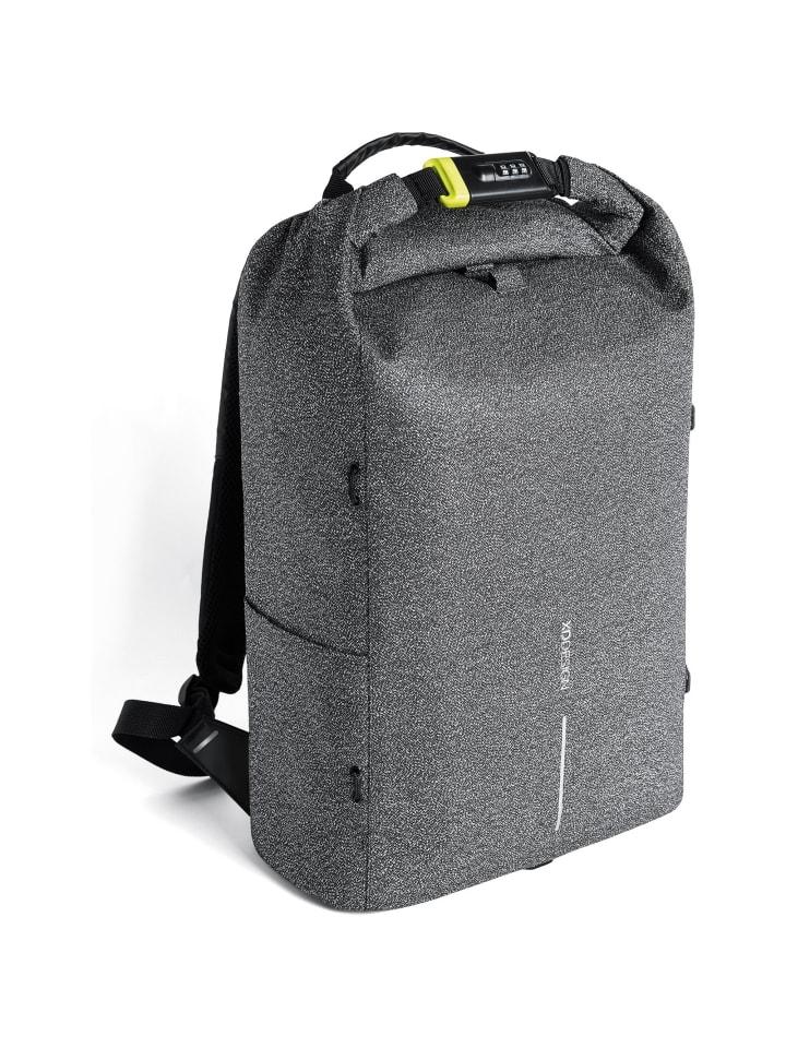 Противоугонный рюкзак от XD Design впечатляет многочисленными функциями безопасности. Он изготовлен из водоотталкивающего, устойчивого к разрывам и порезам материала, оснащен встроенным замком, а также скрытыми отделениями и карманами. Мягкая система переноски обеспечивает оптимальный комфорт и равномерное распределение нагрузки. Среди других преимуществ: застежка-ролл-топ с расширяемым отделением, возможность крепления на заднюю часть сумки-тележки, отделение для ноутбука с мягкой подкладкой для ноутбуков с диагональю экрана до 39,5 см (15,6 дюйма), отделение для планшета с мягкой подкладкой, защита от кражи данных RFID и многое другое.