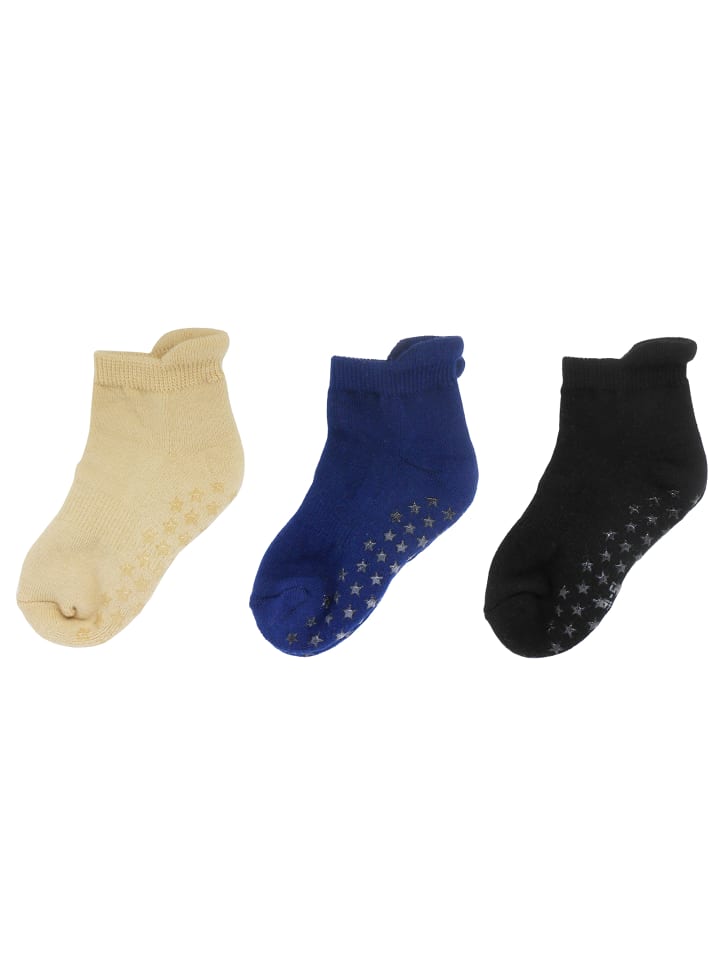 Эти мягкие детские носки с полуплюшем и рифленой подошвой поставляются в упаковке по три штуки и разработаны для предотвращения скольжения на гладком полу и сохранения тепла в холодных ногах. Носки очень эластичные и удобные, а идеальная посадка гарантирует максимальный комфорт. Носки доступны в цветах для мальчиков и девочек. Состав: 73,2% хлопок; 23,2% полиамид; 3,6% эластан. Эти носки также можно носить поверх колготок, чтобы ножки малыша всегда были в тепле.