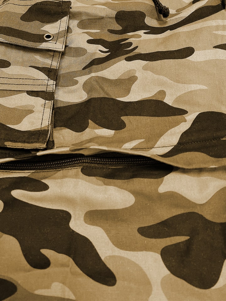 ---- Шорты-бермуды на молнии: Легкие мужские бермуды Шорты с камуфляжным рисунком, кулиской, отстегивающимися на молнии брюками-карго. ---- Товар соответствует размеру. Материал: 65% хлопок, 35% полиэстер Крой: стандартный Застежка: молния 8430 Инструкция по уходу: машинная стирка при 30°C.