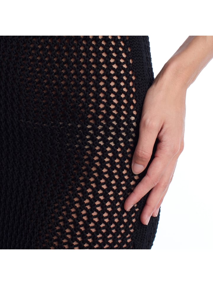 Длинное платье Zadig & Voltaire из ажурной сетчатой ткани. Модель без рукавов с круглым вырезом и спинкой-борцовкой подчеркивает женственный силуэт, предлагая современный и провокационный стиль. Благодаря своей прозрачной структуре оно подходит как в качестве пляжного платья, так и в качестве многослойного образа с контрастным нижним бельем.