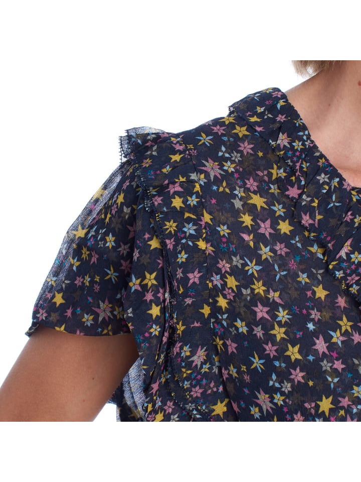 Это длинное платье от Zadig & Voltaire очаровывает струящейся драпировкой и нежным цветочным принтом, которые придают свежесть и движение. Вырез крест-накрест с бантом и оборки, обрамляющие шею, придают ей женственный и непринужденный вид. Слегка расклешенные рукава и эластичный пояс подчеркивают силуэт, не жертвуя комфортом.