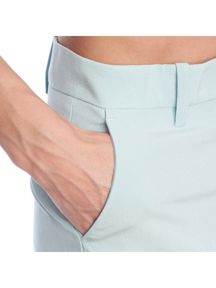 Эти шорты отличаются лаконичным современным дизайном. Приталенный силуэт и складки спереди придают модели четкость и структуру, а задние карманы на пуговицах добавляют функциональности и стиля. Струящаяся ткань делает их идеальными для создания изысканных городских образов в теплом климате.