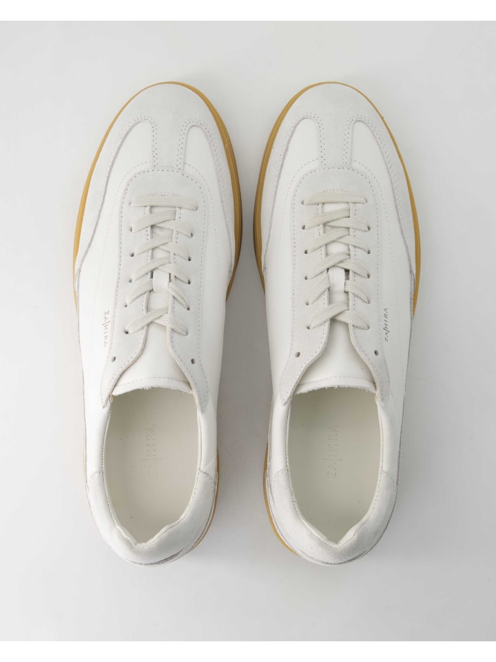 Мужские белые кроссовки Zahira - стильные, удобные и универсальные. Модель 4070 впечатляет высококачественной гладкой и замшевой кожей, удобной кожаной подкладкой и нескользящей резиновой подошвой контрастного цвета. Идеально подходит для мужчин, которые ищут модную и удобную повседневную обувь - будь то офис, отдых или поездки на выходные. Приобретайте свои прямо сейчас и наслаждайтесь современным комфортом.
