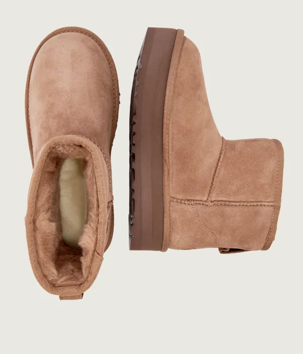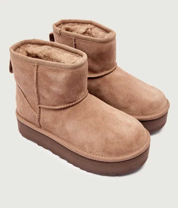Классические кожаные зимние ботинки на мини-платформе Ugg, бежевый