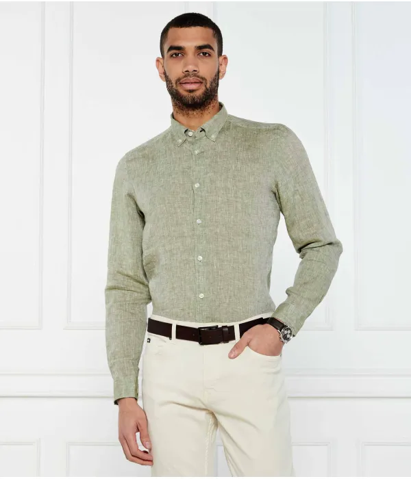 Льняная рубашка c-liam-s-bd-c1-243 Regular fit Boss, зеленый