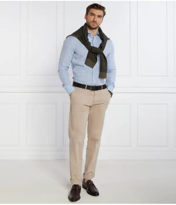 Льняная рубашка H-hank Slim fit Boss, синий