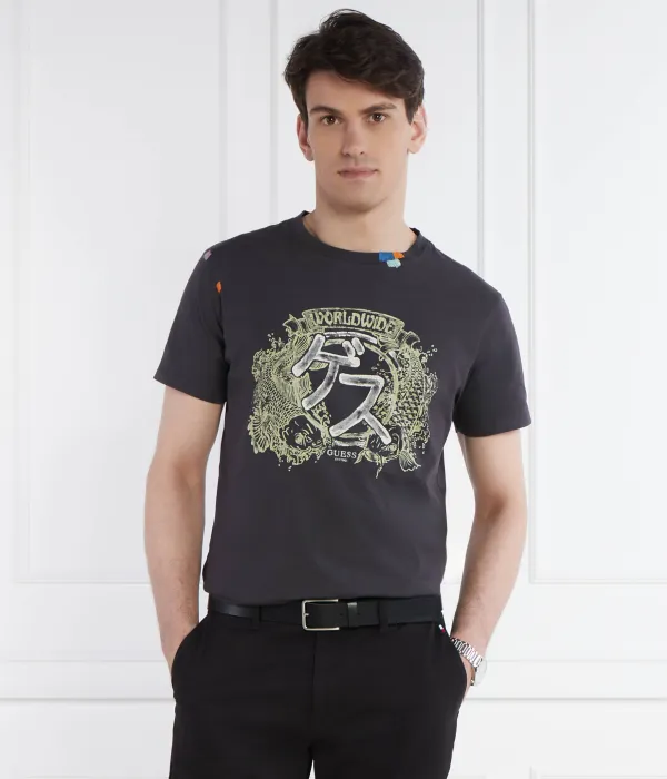 Футболка с японской идеей Regular fit Guess Jeans, серый