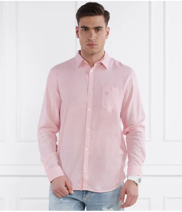 Льняная рубашка Regular fit Guess Underwear, розовый