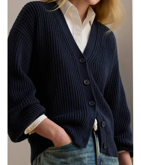 Шерстяной кардиган Regular fit Lauren Ralph Lauren, синий