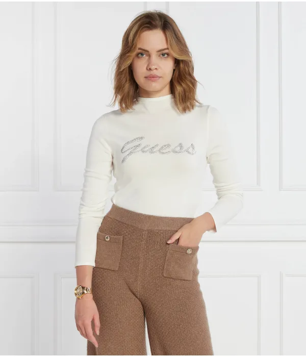 Блузка с логотипом из стразов Regular fit Guess Jeans, белый