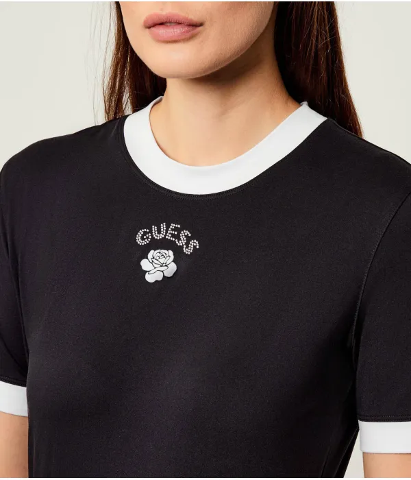 Футболка с мини-розой Slim fit Guess Jeans, черный