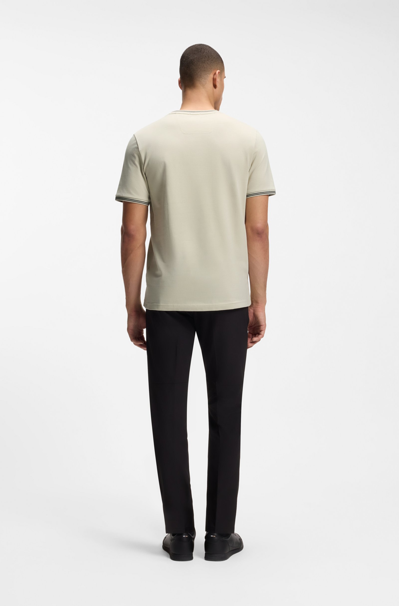 Контрастные полосы, расположенные на футболке, добавляют модели динамичный характер и современный акцент. В сочетании с фирменным брендингом BOSS, они превращают обычную футболку в выразительный элемент гардероба, демонстрирующий ваш безупречный вкус и приверженность качеству.