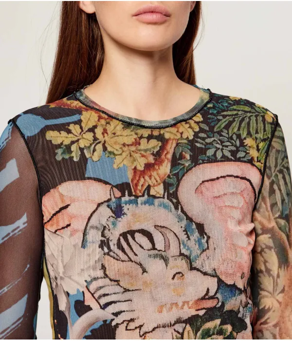 Блузка с драконом Slim fit Desigual, мультиколор