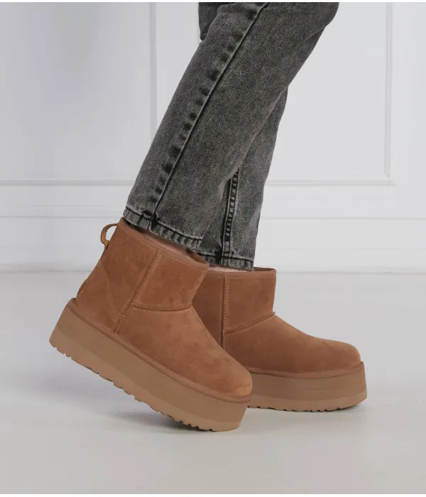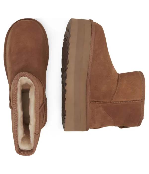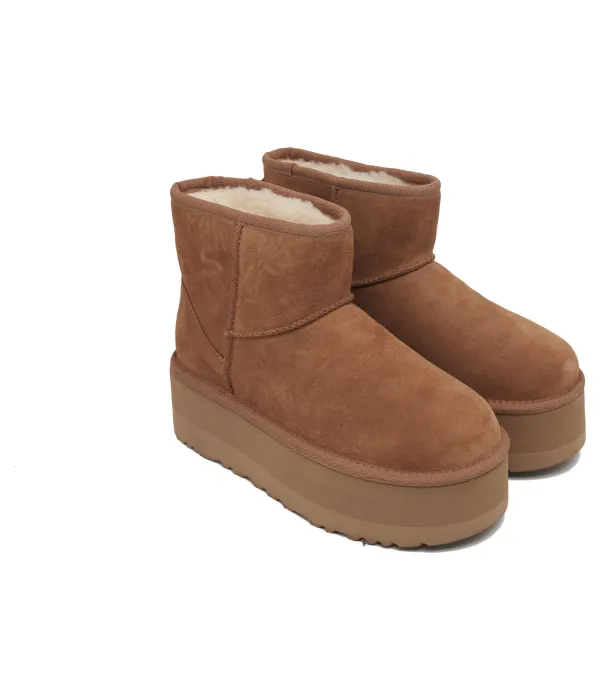 Активирован режим увеличения высоты ног. Классическая мини-платформа — это подарок, который продолжает дарить ощущение высоты и стильный образ. Она изготовлена из роскошной замши с подкладкой из нашей фирменной ткани UGGplush для фирменной мягкости.