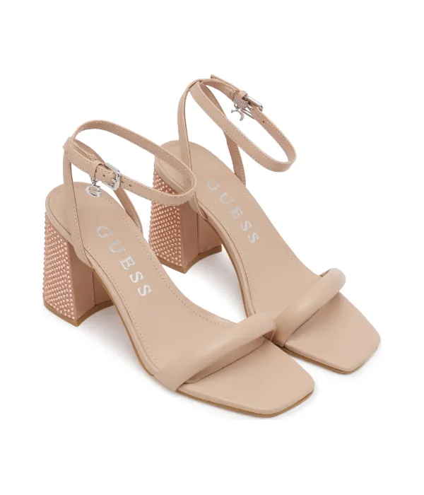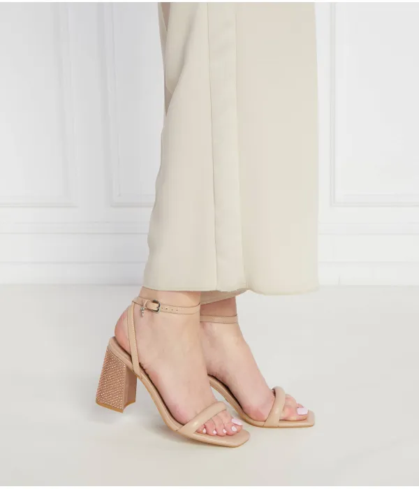 Кожаные босоножки на каблуке Guess, бежевый