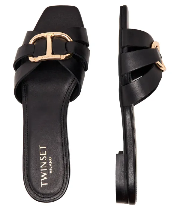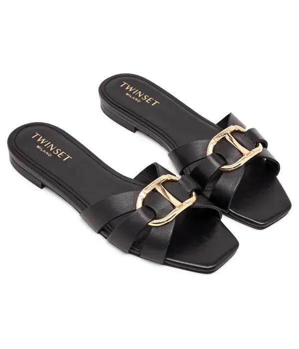 Кожаные тапочки Twin-Set, черный