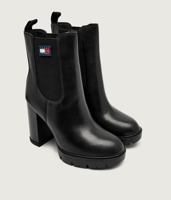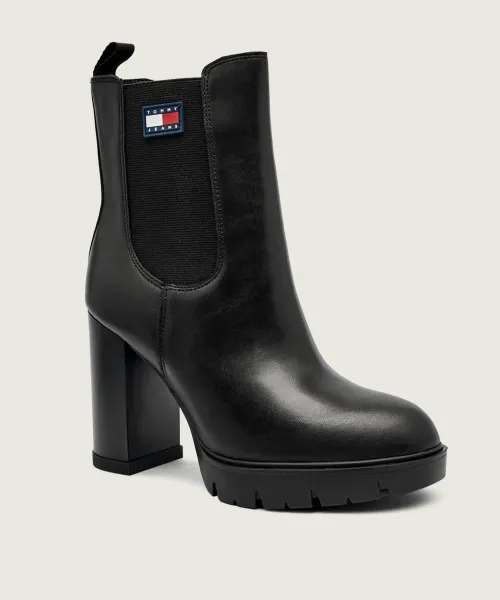 Кожаные ботильоны на блочном каблуке Tommy Jeans, черный