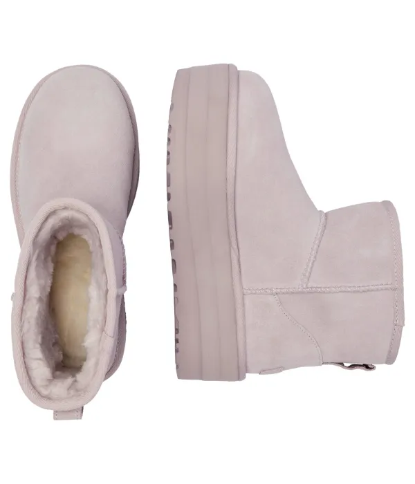 Активирован режим увеличения высоты ног. Классическая мини-платформа — это подарок, который продолжает дарить ощущение высоты и стильный образ. Она изготовлена из роскошной замши с подкладкой из нашей фирменной ткани UGGplush для фирменной мягкости.