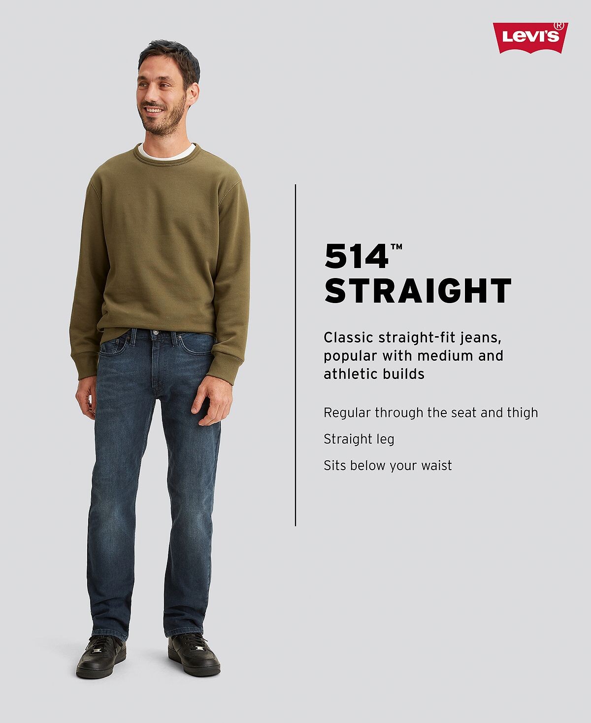 Ищете, что это не слишком расслабленно и не слишком прямо? Вам повезло: мужские джинсы прямого кроя Levi's 514 попали в самую точку. Благодаря универсальному обтекаемому силуэту они будут смотреться как с футболкой, так и с рубашкой на пуговицах.